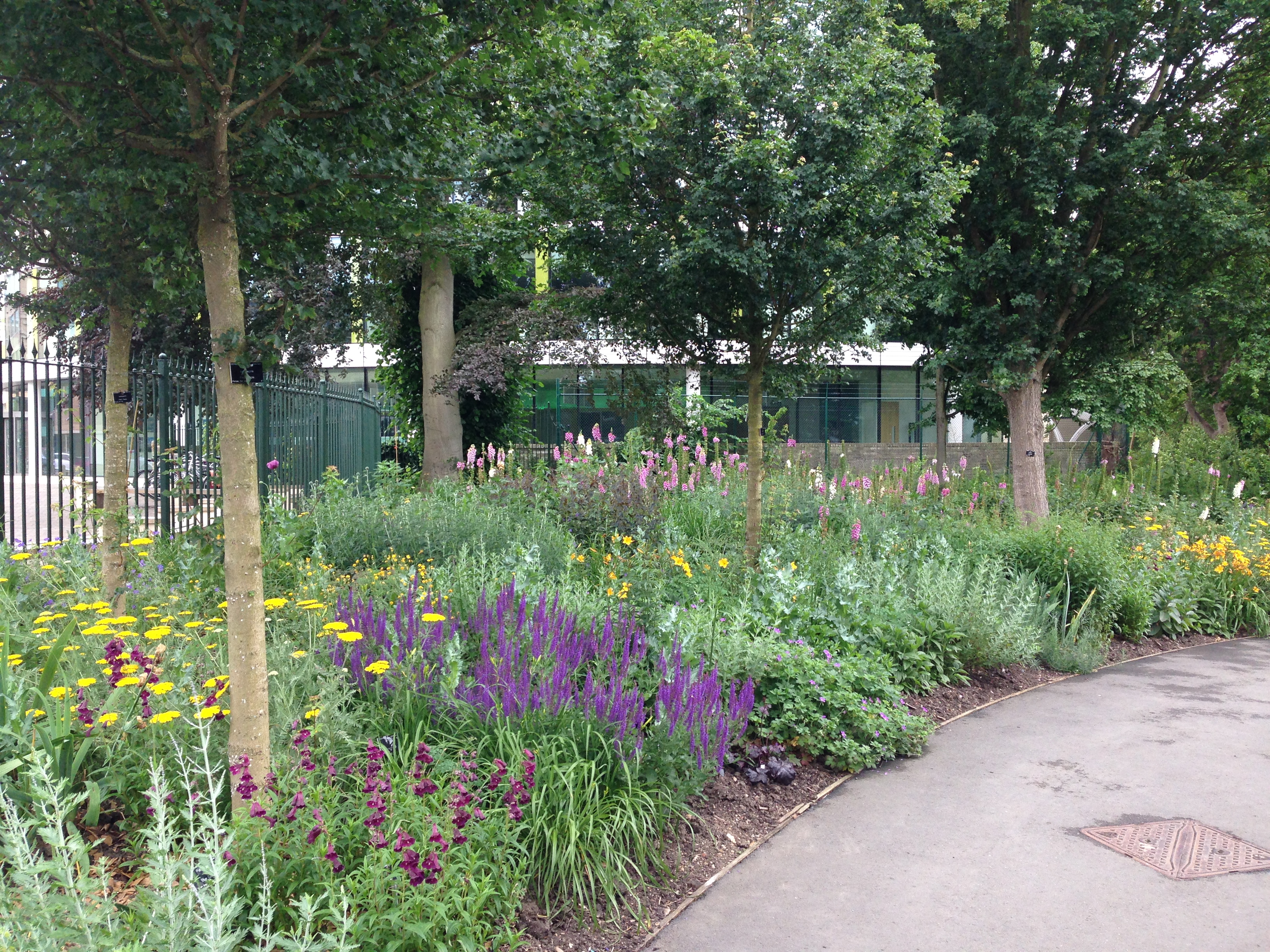 Various perennials have been repeated a number of times in this border at Queens’ College, Cambridge. These won’t add great structure in winter but have a good unifying effect from spring to autumn.