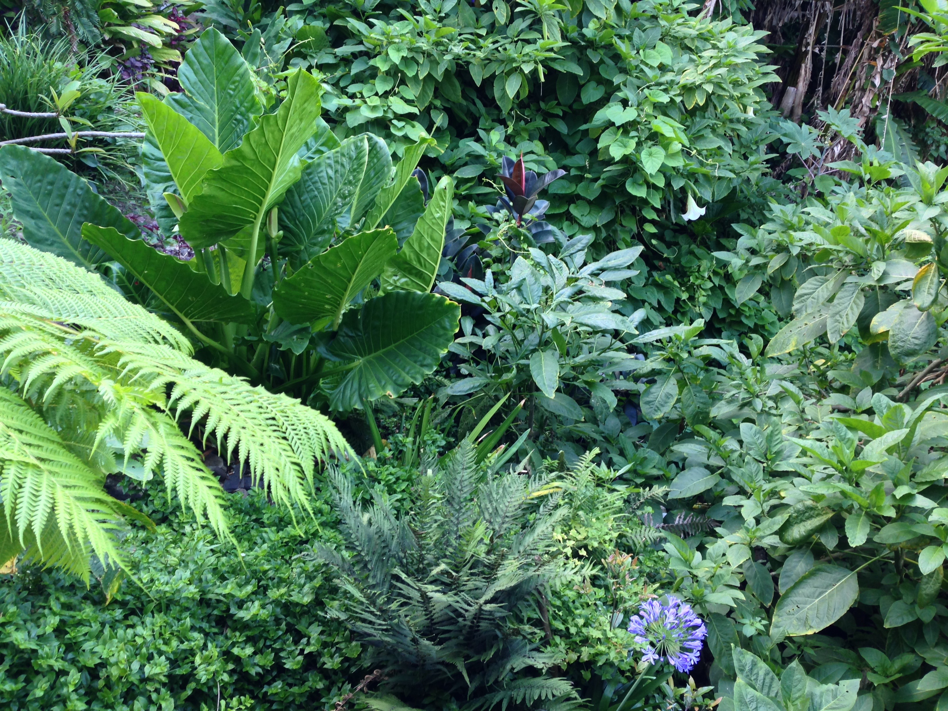 Wendy planted natives, exotics, herbs, vegetables, Mediterranean plants, plants from the tropics and subtropics, rainforest species, arid succulents, and even English style roses.