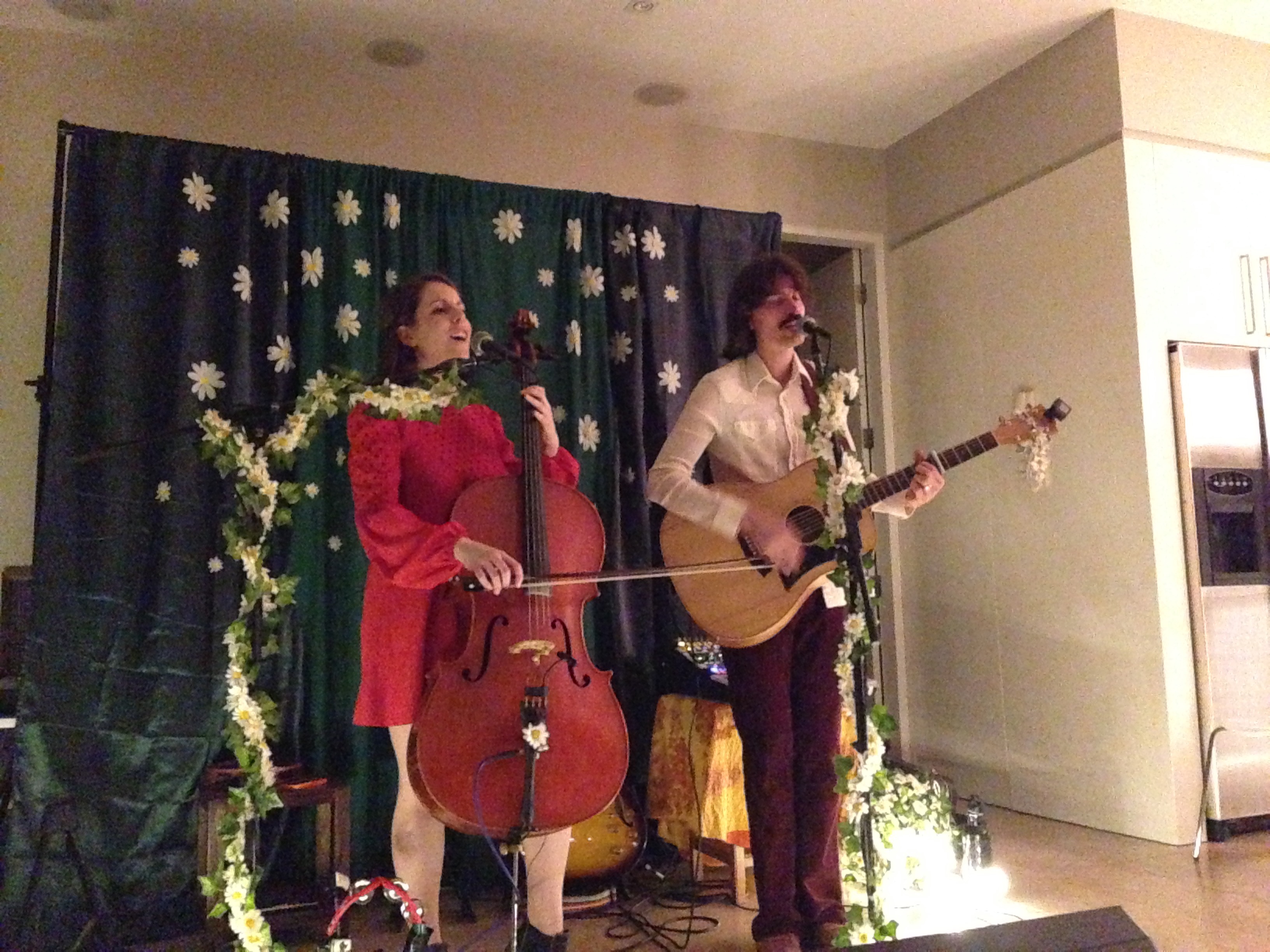 Thanks, Becca. It was a bit unusual, although this duo do it all the time. We saw them at a small tennis club concert and loved them. As we had a good excuse to celebrate, we have a good layout at our house to make it work and it wasn’t prohibitively expensive, we thought, why not do something outrageous!