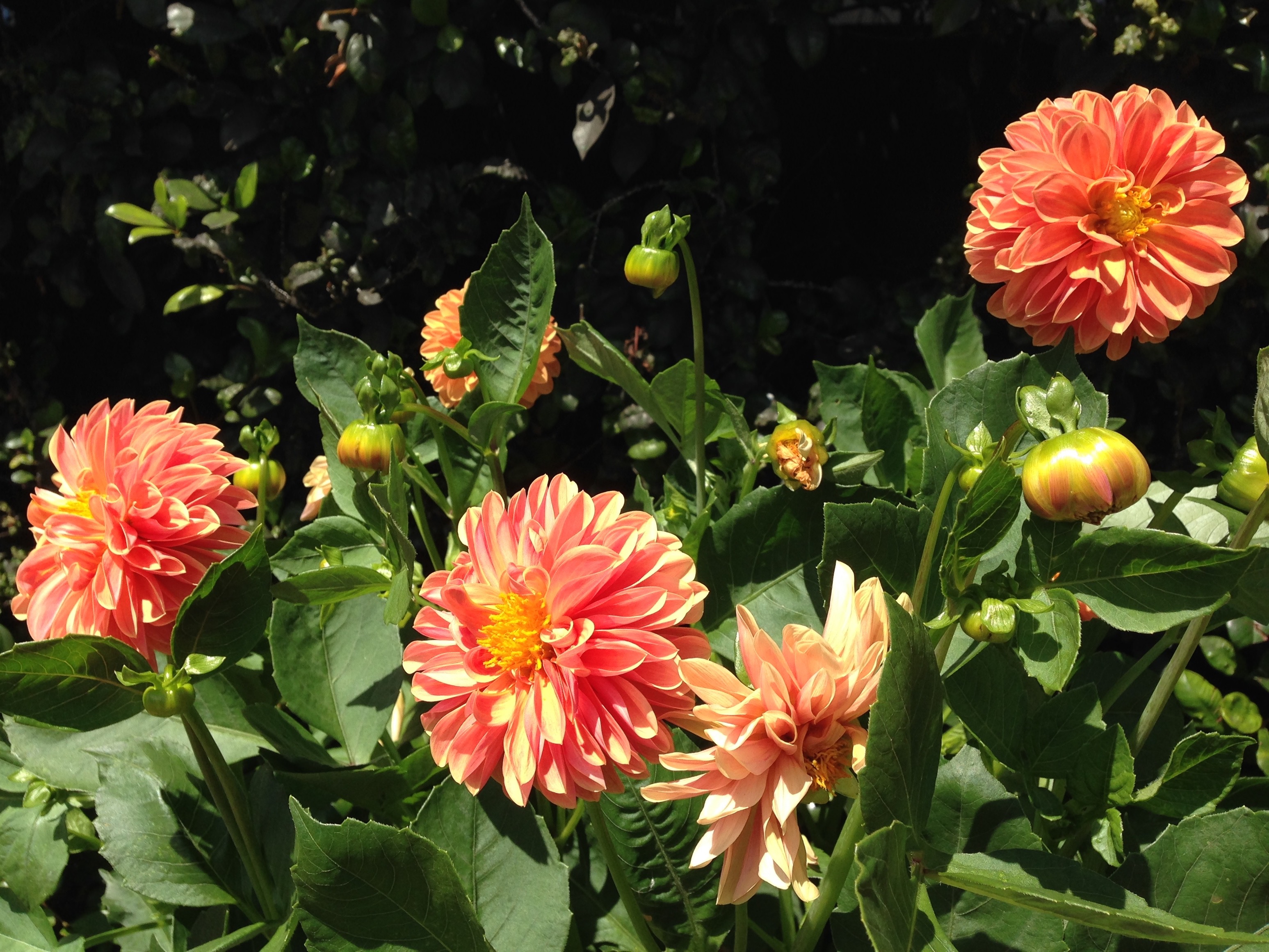 It has a little peach tree that you look out on to from the restaurant, surrounded by cheery, bright orange dahlias. There is nothing formulaic about these plantings.  There are just there for pure pleasure! You can’t help but smile when you see them.