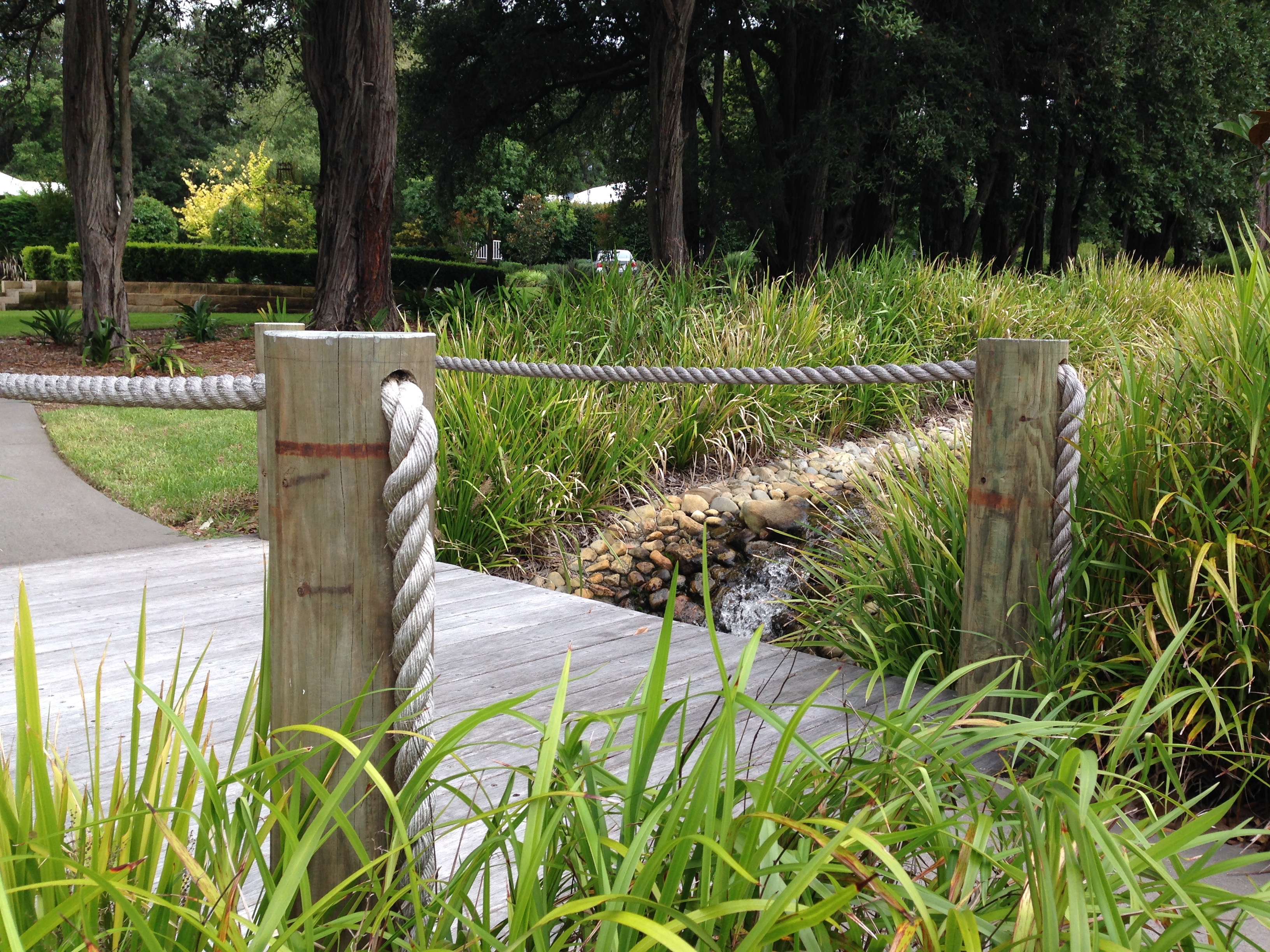 These timber posts and chunky rope really hold their ground and yet they fit perfectly with this more rustic part of the garden.