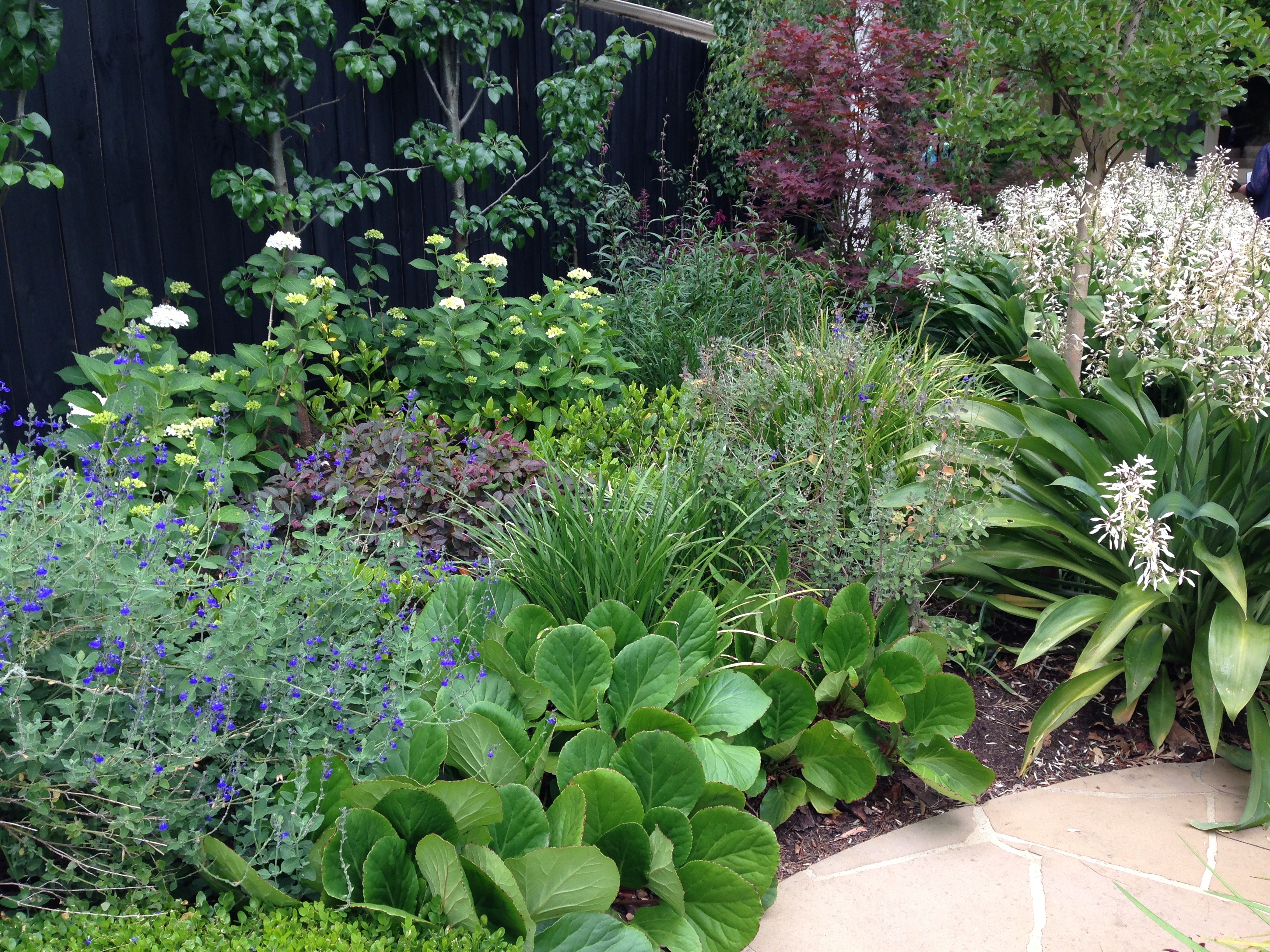 But you know, there are no right or wrong answers in garden design. Just preferences and trends. And until my Bergenia look as healthy as the ones below and I stop being corrected by Bunnings staff twice my age about what is trendy, perhaps I should not be too vocal on such things! Subtle or (a tiny bit) blocky, there is no question that this is, indeed, a beautiful garden.