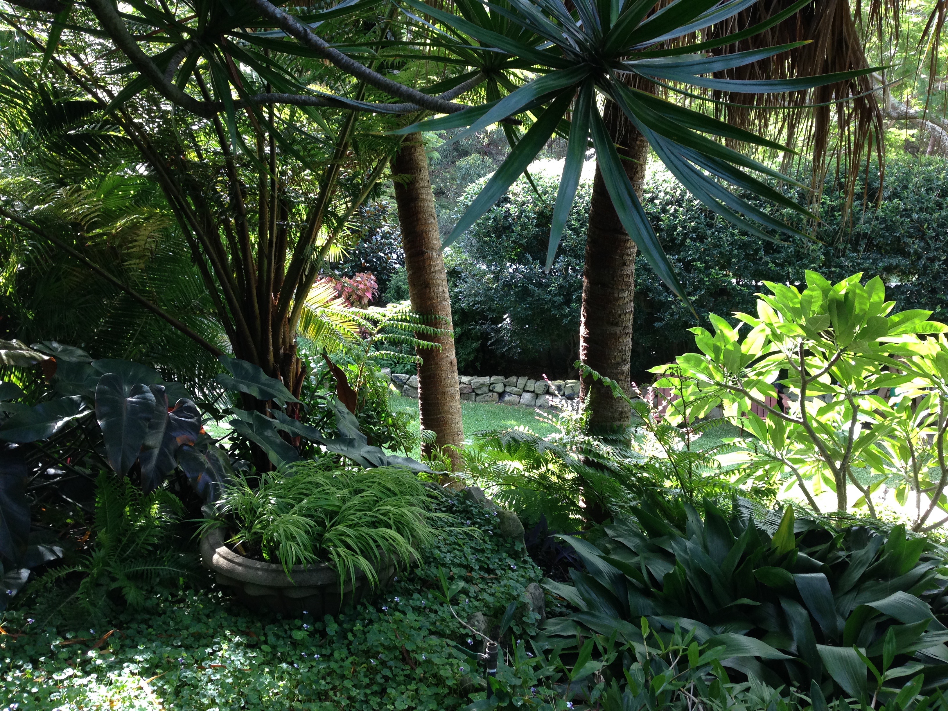 It would be easy to sit here all day on the rear lawn. Asplenium and Crassula textures are a beautiful combination