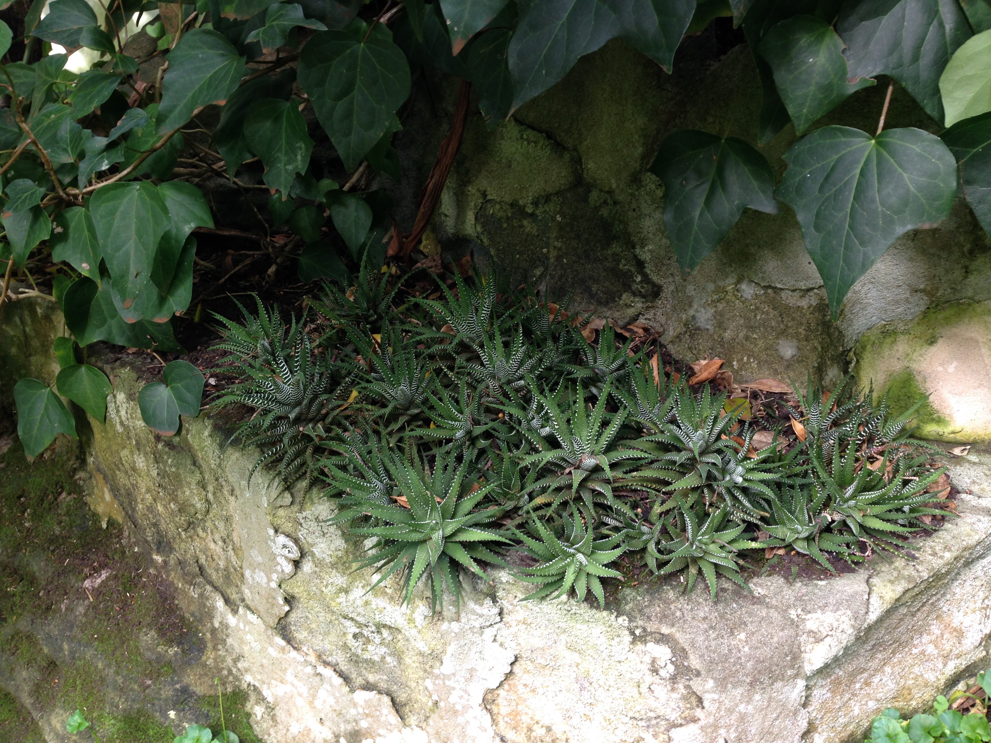 Small nooks with small plants can look twee, but these Haworthia are perfect for this little pocket in the stonework – a great example of repeating a single species to great effect