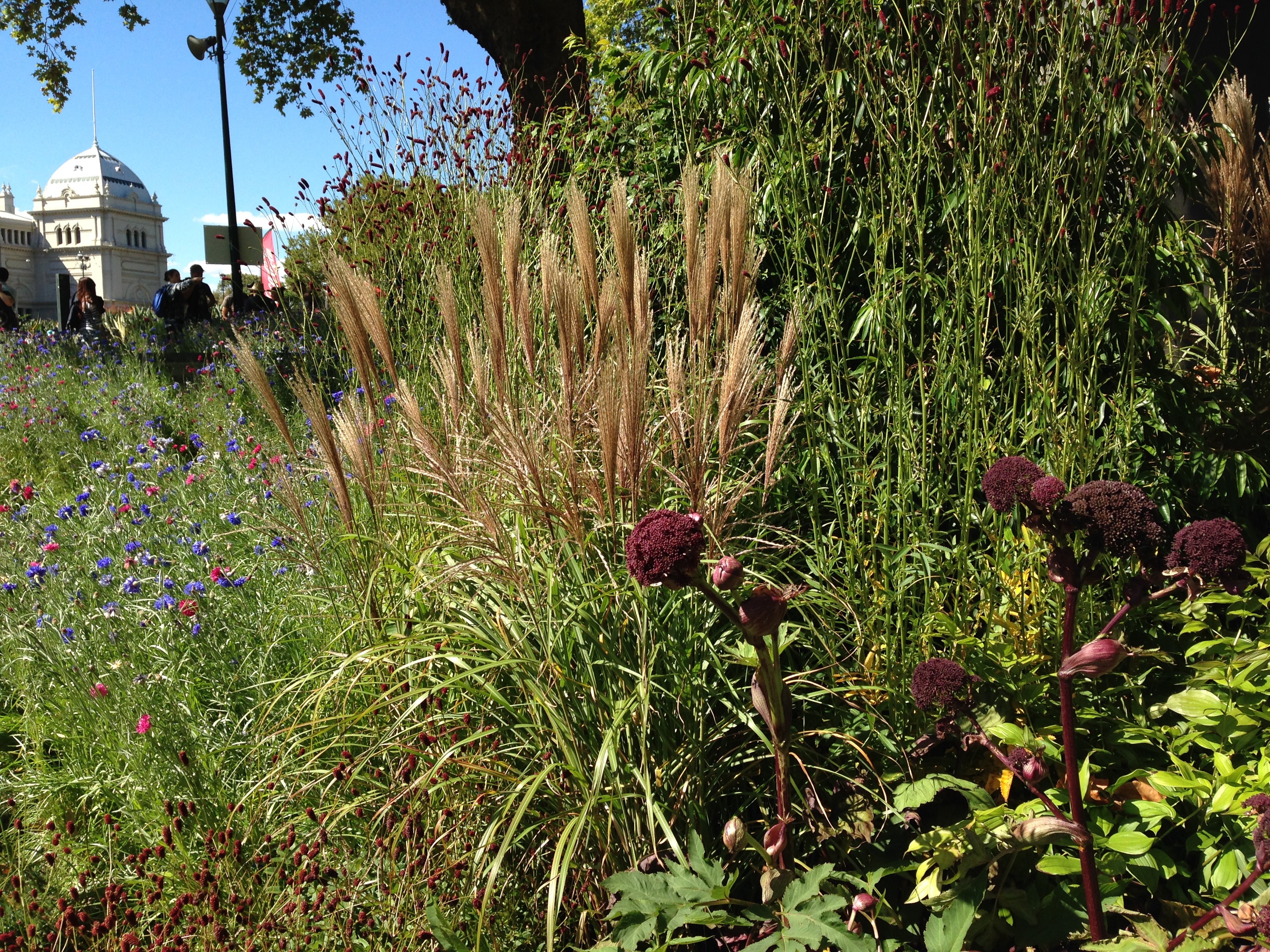 Interesting Janna – from the first photo above I immediately felt a lack of cohesion in the planting, the plants’ leaf shapes don’t sit together comfortably. It is too flat overall. The grasses were not mature enough to add the drama this space needs (and in their leanness) rather than lifting the flatness, accentuate it. It feels more unkempt than naturalistic – yes it could easily be someone’s, anyone’s garden. I like it, yet I don’t like it. Maybe you had to be there to appreciate it. The corn flower meadow? Very romantic but totally impractical – I am yet to see a flower meadow that works in Australia – apart from those created naturally on nature’s stunning rockery below Cradle Mountain in Tasmania, or in the outback after rains.