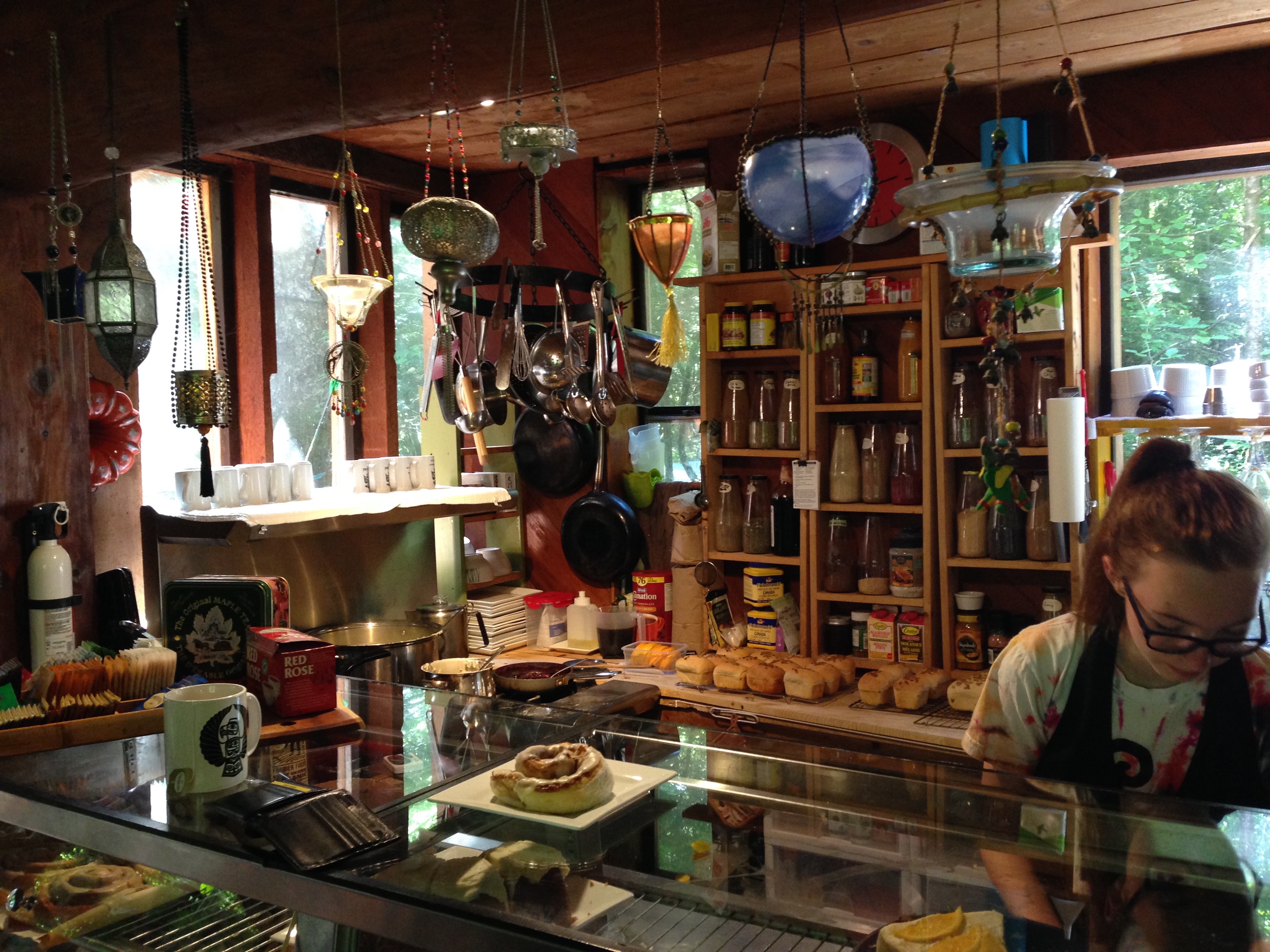 The most delightful experience was visiting a bakery in the forest. About twenty kilometres down a dirt road, we came across the ‘Moon Over Naikoon’ bakery. We parked at the sign and walked through dense trees to a little shed, where we were greeted with smiles and pizza and cinnamon buns. There was no electricity, no running water, just amazing smells and tastes, produced via solar power and hard work at half the price I would pay at home.