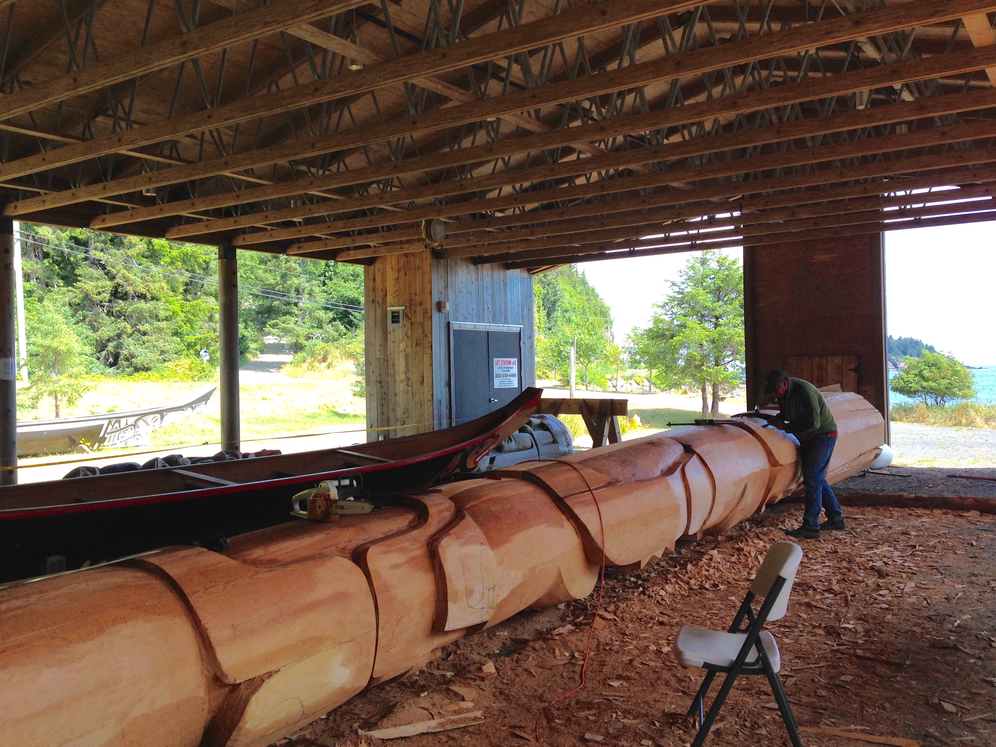 Totem pole carving at the Haida Gwaii Museum. Janna Schreier