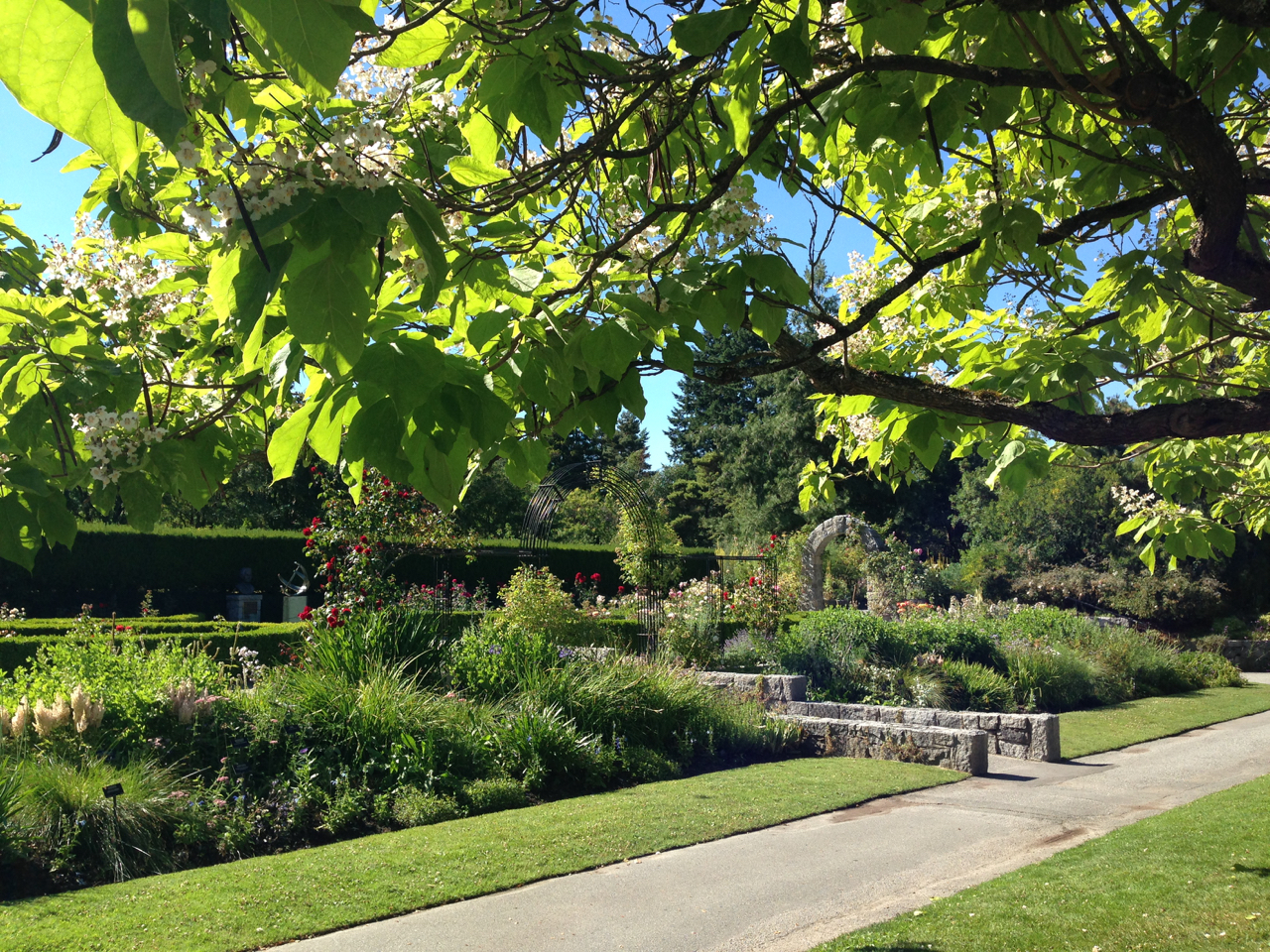 Informal plantings border the formal Rose garden at the VanDusen Botanical Garden