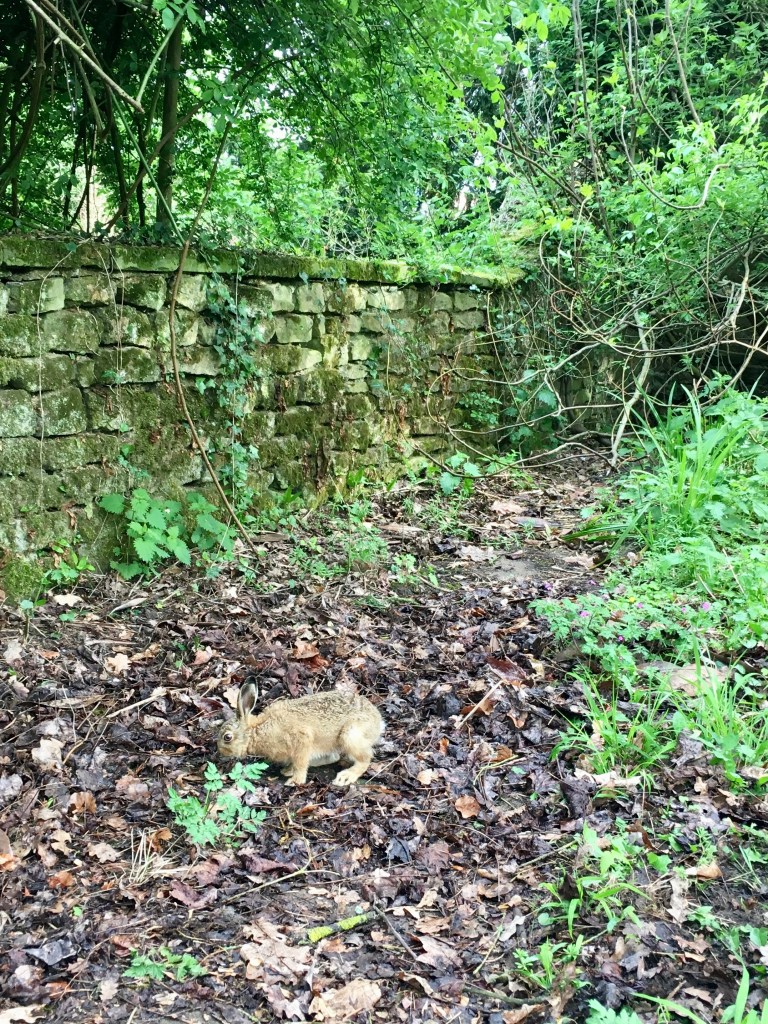 I shouldn’t have been surprised. From March to September we continually stumble across baby hares. The farmer’s wife said she’d never seen leverets in our garden before but thought our lack of cats and dogs (for the first time in the property’s history for at least 45 years) would make it a very happy haven for them.