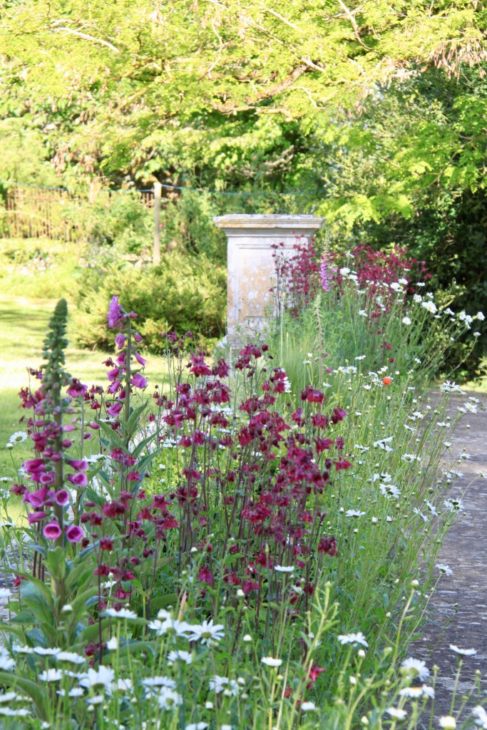 Self sown Aquilegia, foxgloves and poppies create a display alongside ox-eye daisies from Mum’s garden