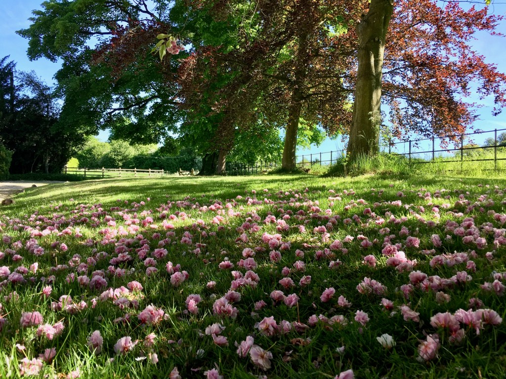 Pretty – but also sad – to see a carpet of blossom under the last of the flowering cherries
