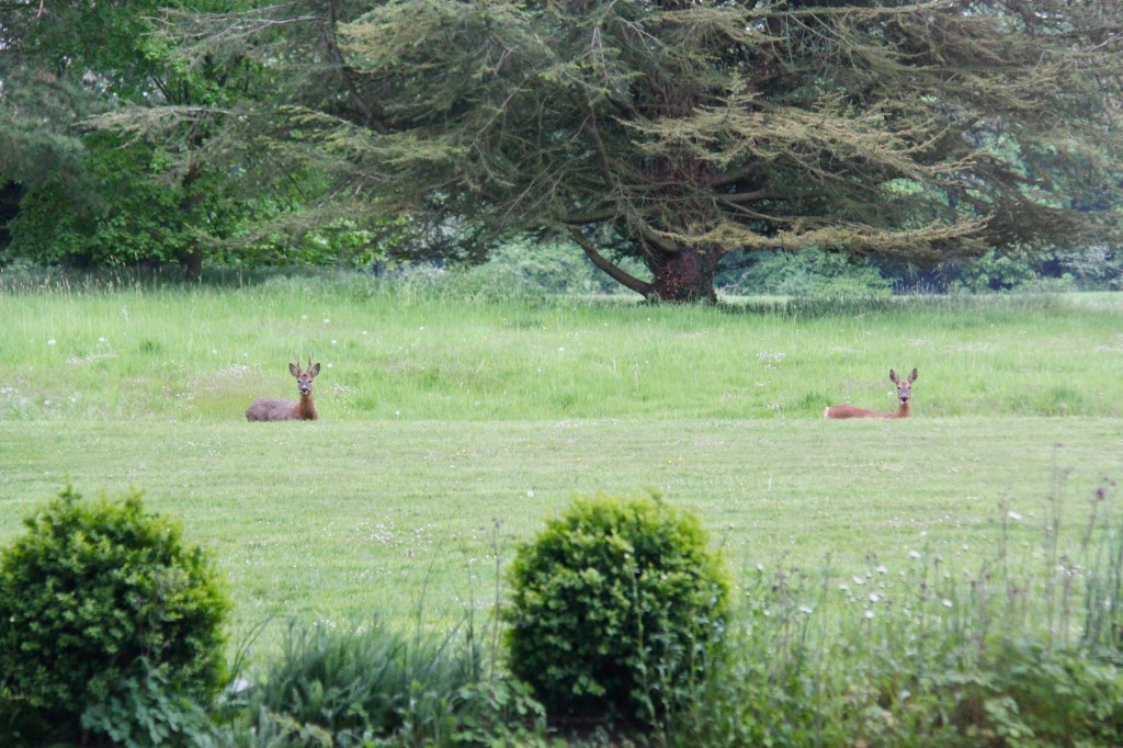 As the deer bend down to choose their favourite delicacy from the bottom of the haha, you can just see their white bottoms sticking up. They then stand up straight, teasingly showing me their pickings…