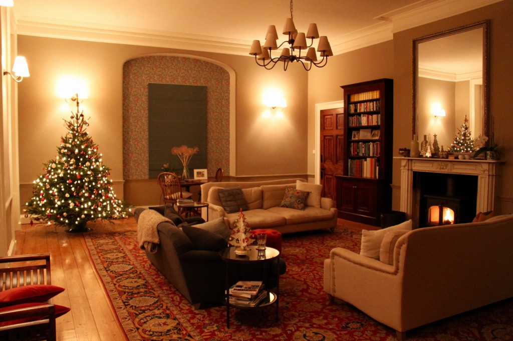 As I wander back towards the house, the full moon lighting up the sky, reflecting vivid blues, there’s nothing quite like looking in to a cosy, warm home, the Christmas tree laden, its soft lights dancing.