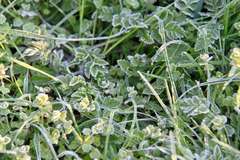 The occasional morning frost highlights this increasing biodiversity. A mild morning and a sheet of green is all that’s seen, but icy white margins pick out so many shapes and forms, a huge array of life which has found its way there.