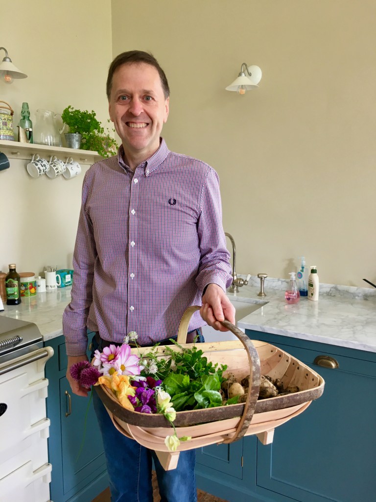 Even Paul’s vegetable garden is joining in, with potatoes spilling out over the pathways, courgettes sporting dozens of glaring yellow flower heads, and beans running up every surface they find.