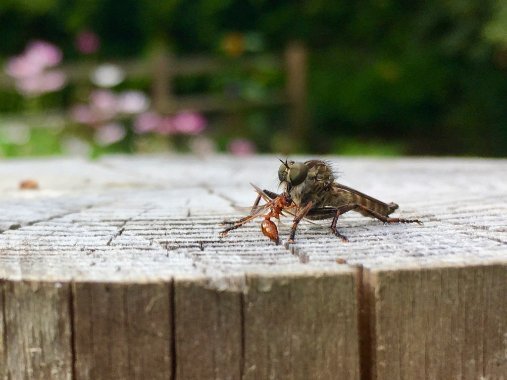 There seem to be more and more insects around with every year we are here. And despite the very dry spring checking every plant’s growth and presumably putting them under some stress, there appear to be fewer insect pests this year. The foxgloves and roses are both aphid free, even the verbascum still have most of their leaves intact this summer: a very definite first.