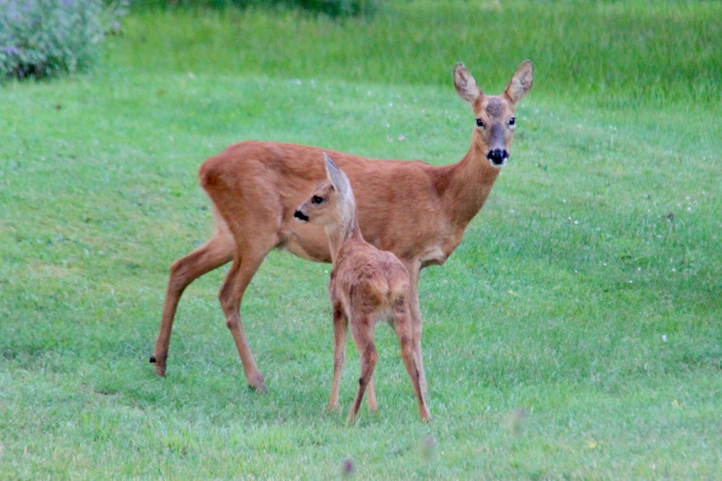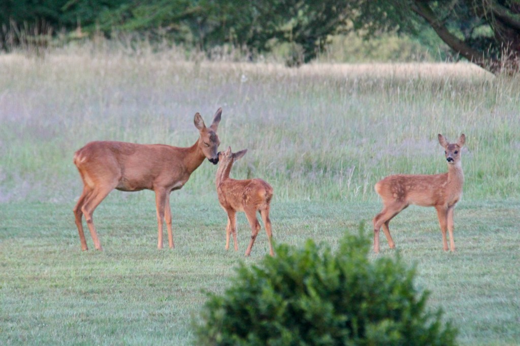 I’m trying a few distraction techniques, with canes placed around the most vulnerable growth, but I still can’t get too cross. We continue to find it such a joy to have Daryl, Darylena and the twins living in our garden – they really are our pets rather than passing, annoying pests – and so magical to watch Darylena reach down to kiss her new babe.