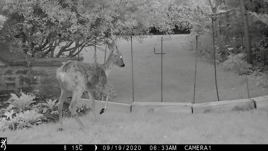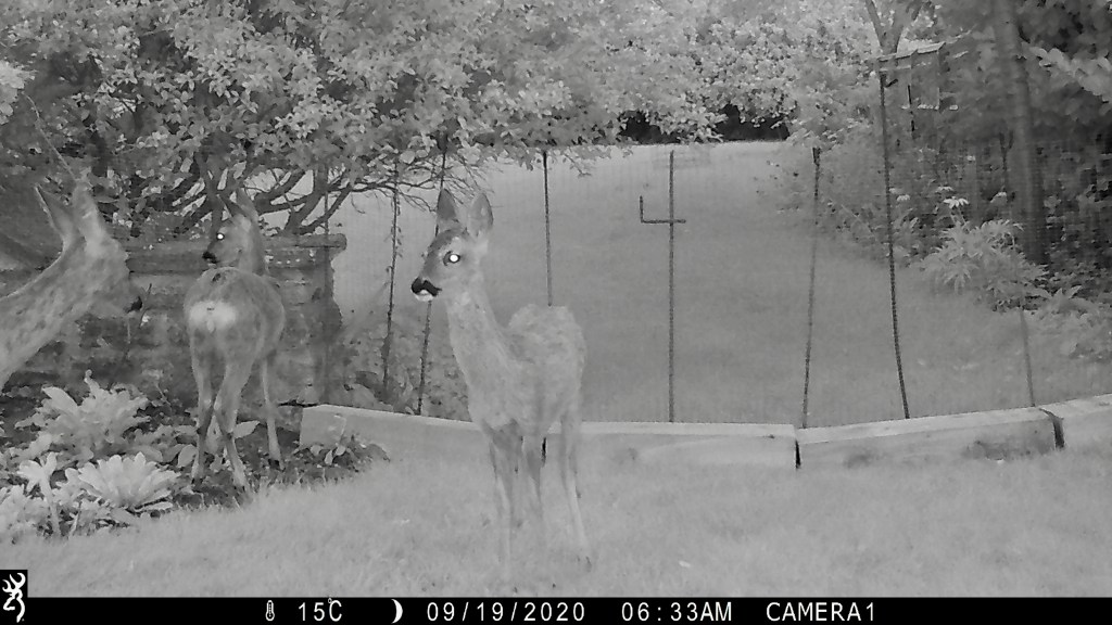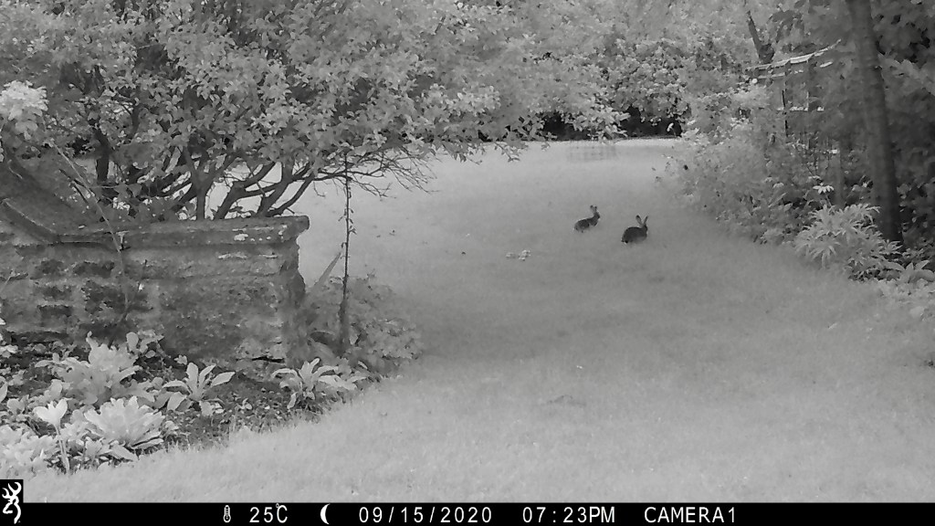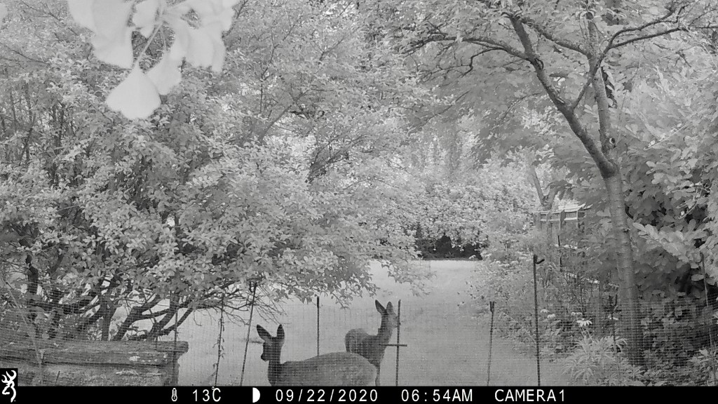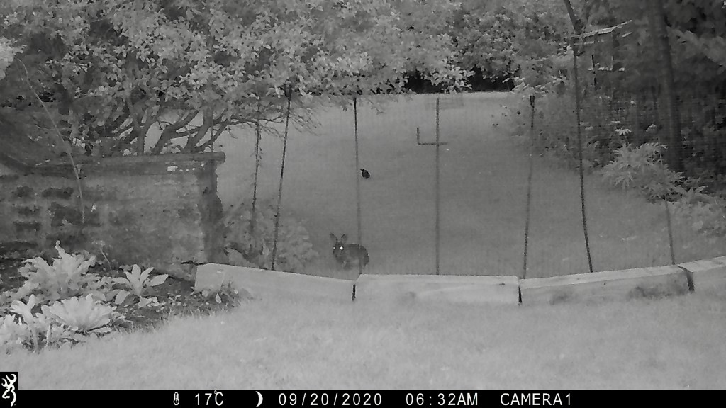 Rabbits are a whole other story – for now, we’re not going to do too much battle with them but we were a little surprised to see the twinnies smiling up at the camera from decidedly the ‘wrong’ side of the fence one morning. New, taller canes went up at the suspected weak point and the camera is now reset and ready to dish the dirt.
