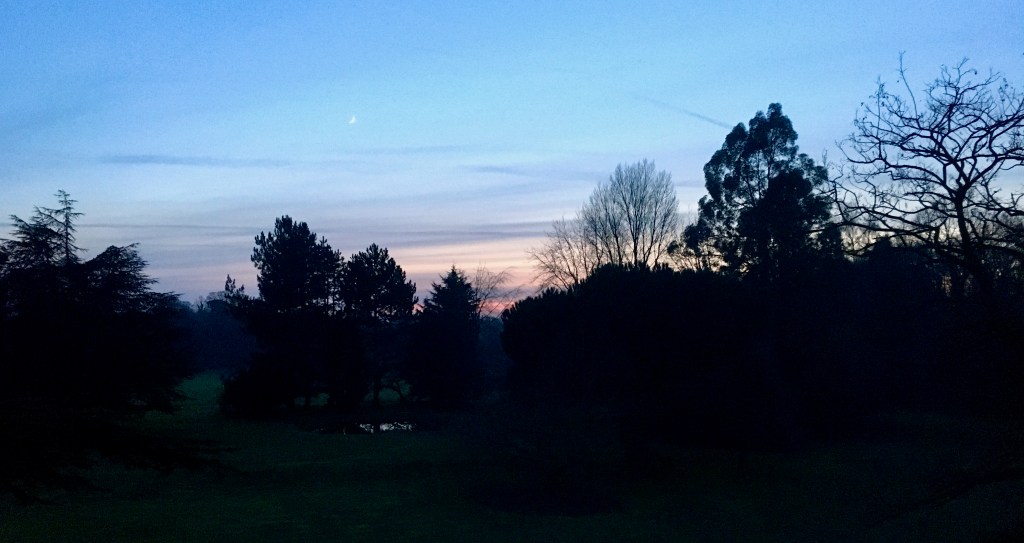 Only the rest of the world isn’t in bed. I realise one of the brown tree trunks isn’t a tree at all. Darylena is there in the woodland, perfectly camouflaged in this new, two-tone land.