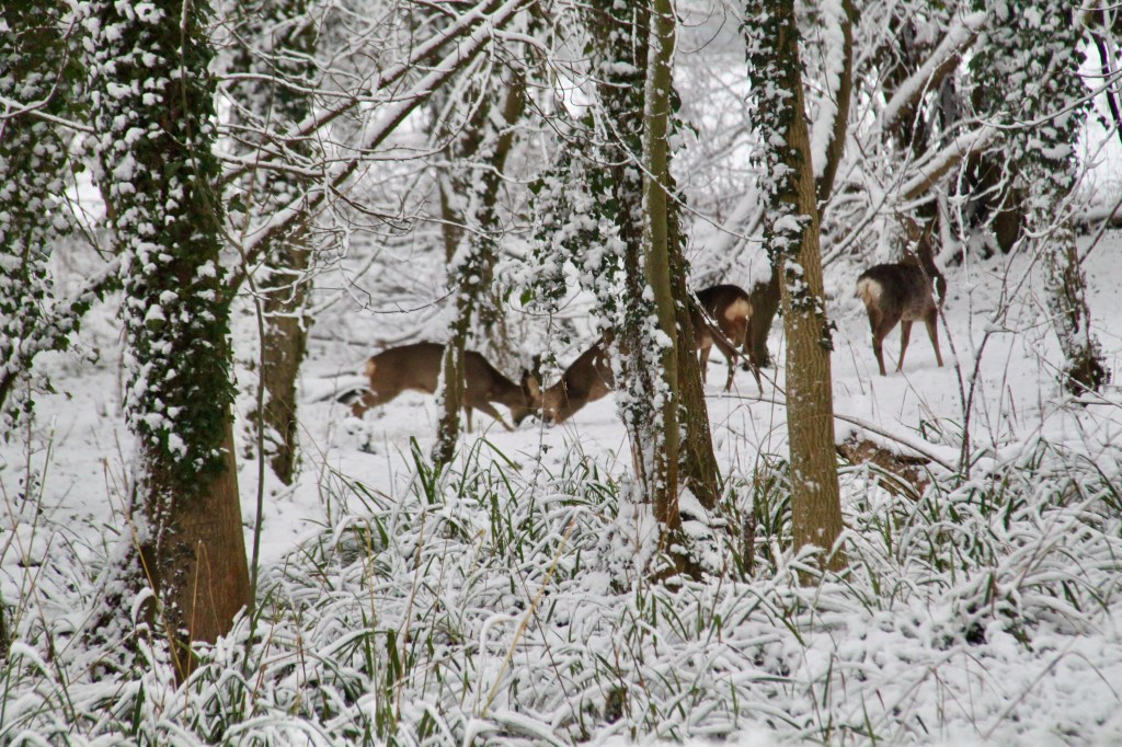 I’m so excited someone else likes my little stream. Although it’s the furthest part of the garden from the house I find it very difficult to start work until I have visited it each day. I’m just drawn to it like no other place. Paul doesn’t get it at all! And I was very lucky to catch the deer family playing like that in the woodland. We often see them playing on the lawn by the house but normally they seem more focussed on grazing in the woodland – just luck to catch that snowy scene. Thank you for coming with me through my winter garden!