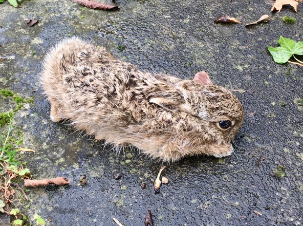 Three days later I was clearing a few bits of ivy I’d abandoned by the back door earlier in the week. I grabbed the pile, only to see fur within it. Ugh! I dropped the ivy, expecting to see something gruesome.