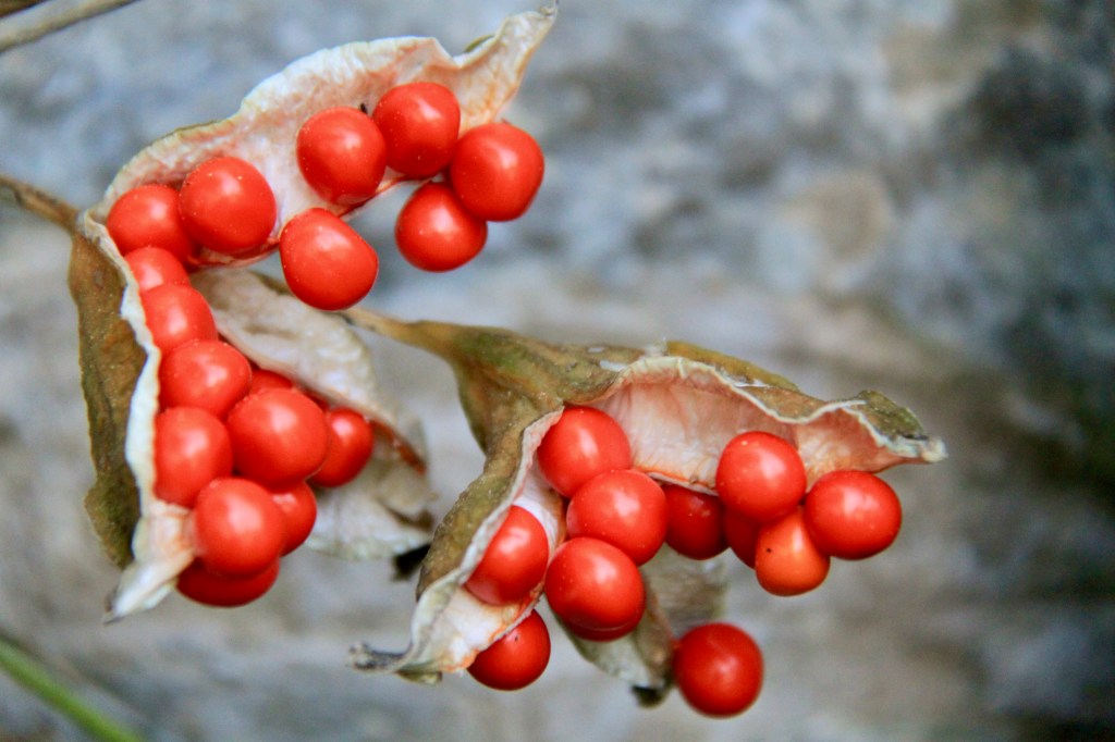 The mice have a lovely, dry, cosy home in the old stone wall with a bountiful supply of juicy honesty leaves on their doorstep. Yet out by the fields, where it’s much more exposed, those honesty leaves have a much better life, away from the hungry jaws of the mices.