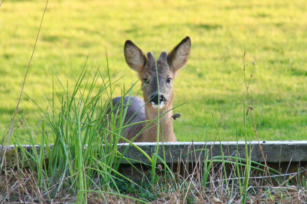 Storm Eunice, far from making them retreat into safety, brought out six roe deer, three muntjac, a hare, a pheasant and a couple of rabbits into view from the kitchen at dusk that first night. Almost all of them at one time. Our garden seems to get more David Attenborough by the day.