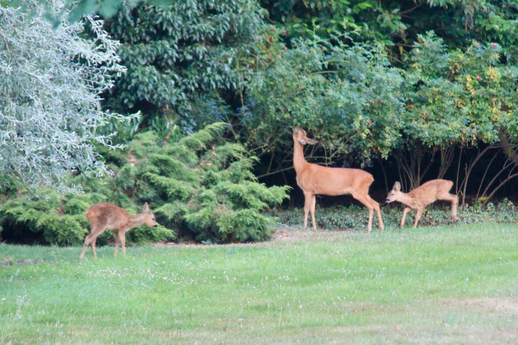 Darylena arrived with her two new babes and all was well again. Whilst having time to munch the roses, she kept them tightly under supervision those first few days, nervously taking them back to the woodland at the slightest sound.