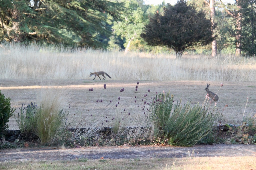 Harry wasn’t overly happy to see Freddy. He stood up on his hind legs, as tall as he could, for as long as he could. Then, a few seconds rest before repeating his act to show how big and scary he was. Freddy wasn’t interested, fortunately, and just carried on his way. Poor Harry sat tall for ages afterwards, ears pricked, on high alert, but all ended well.