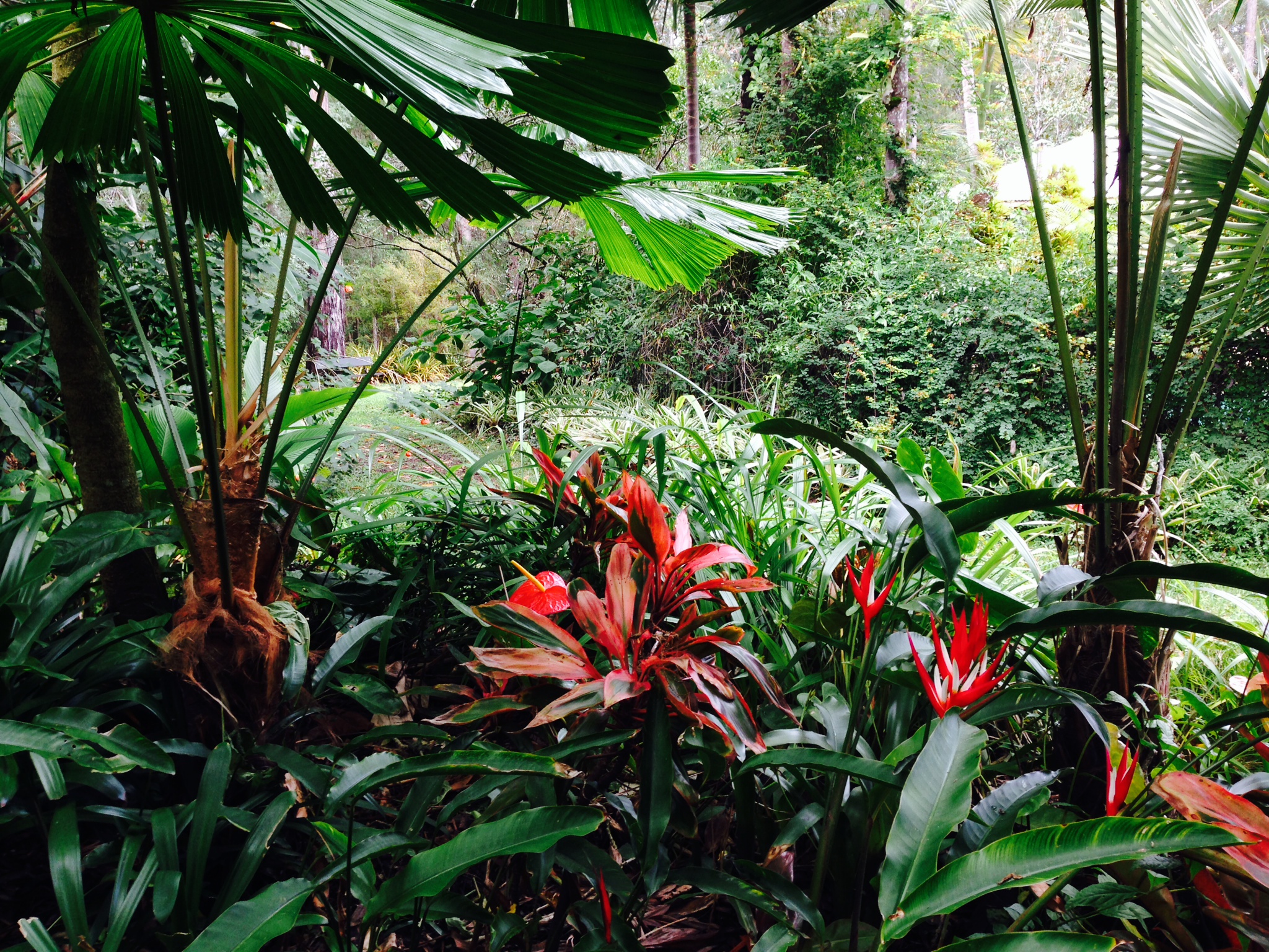 As we explore further I see extensive areas of creative planting combinations. Cheryl cleverly combines temperate plants, such as deciduous magnolias with very tropical heliconias, in a way that somehow looks completely natural.