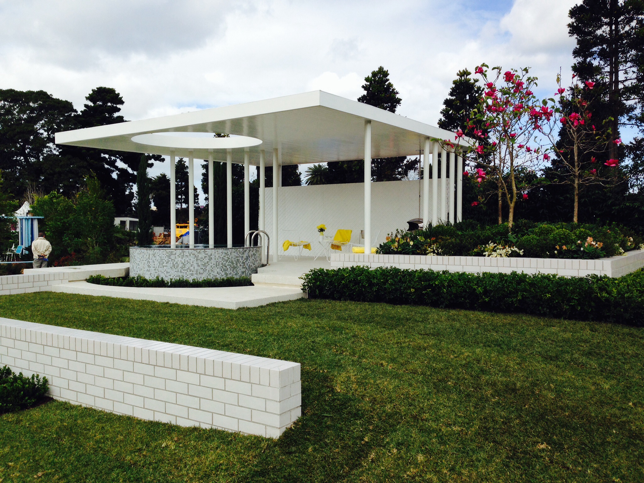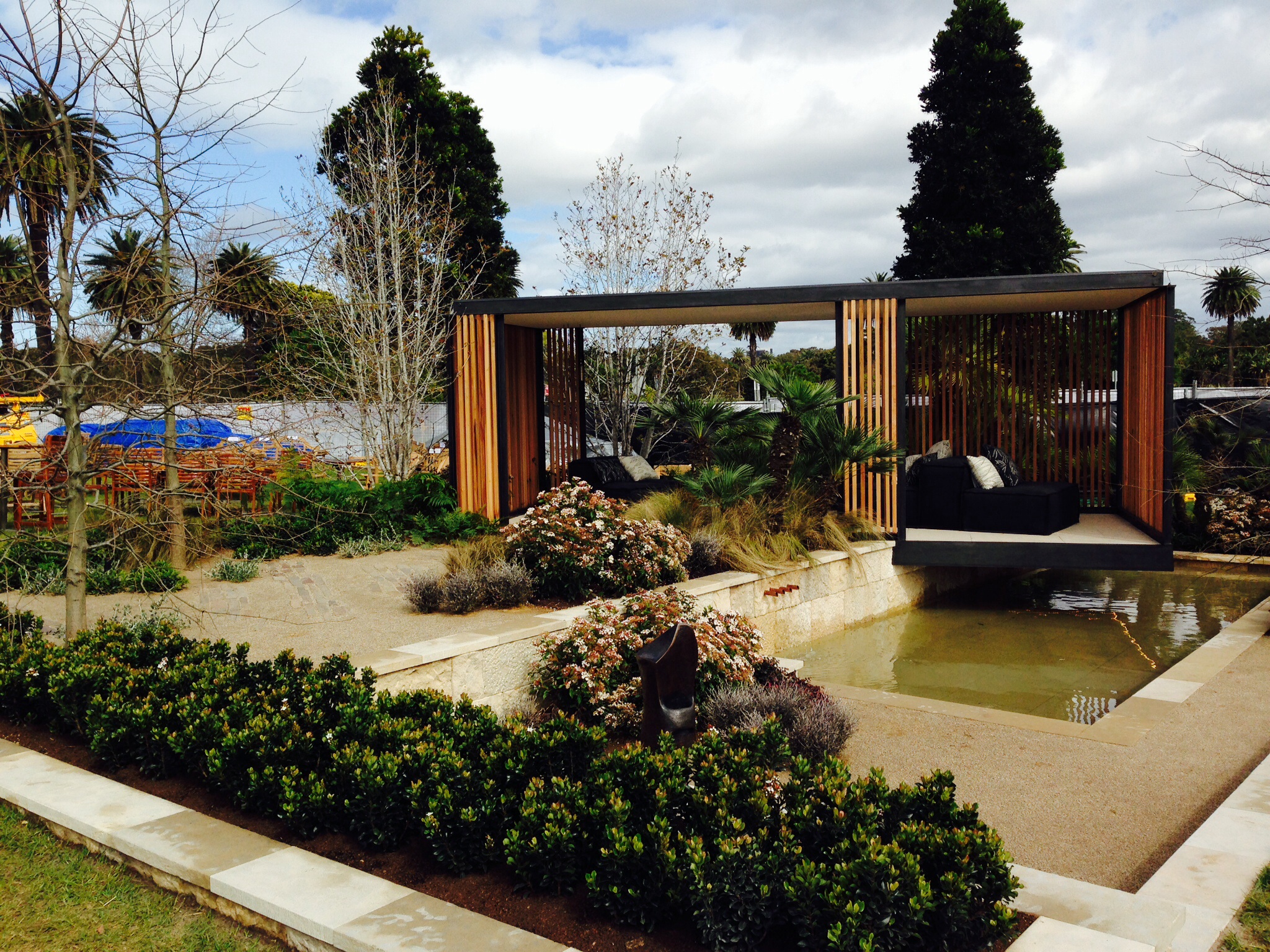 Having spent a rather wet day at the Australian Garden Show Sydney today, I am pleased to report that despite the rain, the ‘Inspirational Gardens’ did indeed live up to their name. I can also report that it truly was the ‘Year of the Pavilion’, with 6 of the 8 gardens dominated by these structures – looking down the line of gardens they were all lined up in a row. It is hard to get past the fact that a pavilion is both very much in fashion and an extremely good way of creating height in a garden that is only a few days old, although I commend the two gardens that very successfully managed to achieve gravitas in alternative, innovative ways.